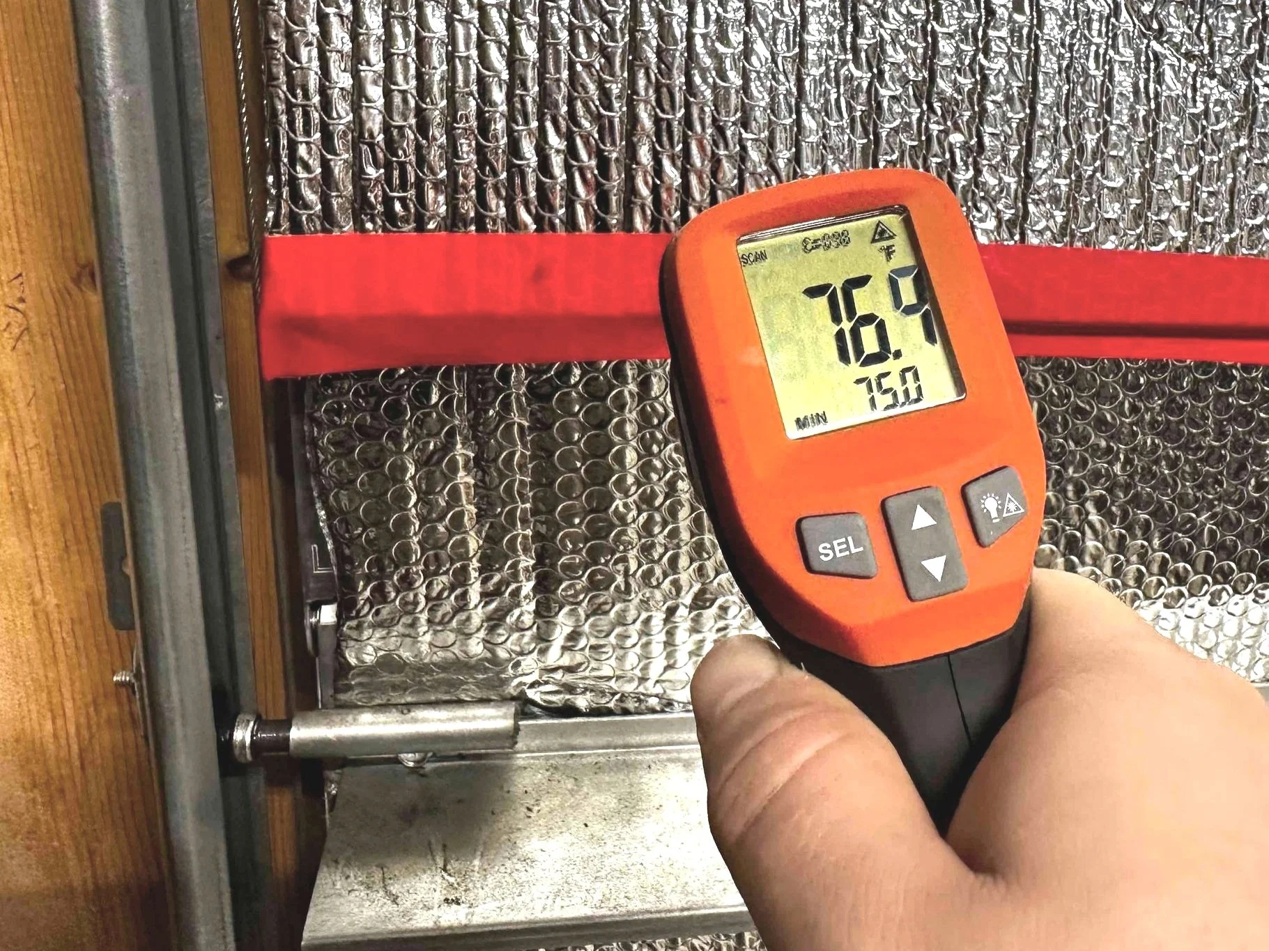 Reflectix Mounted to Garage Door Temp Check