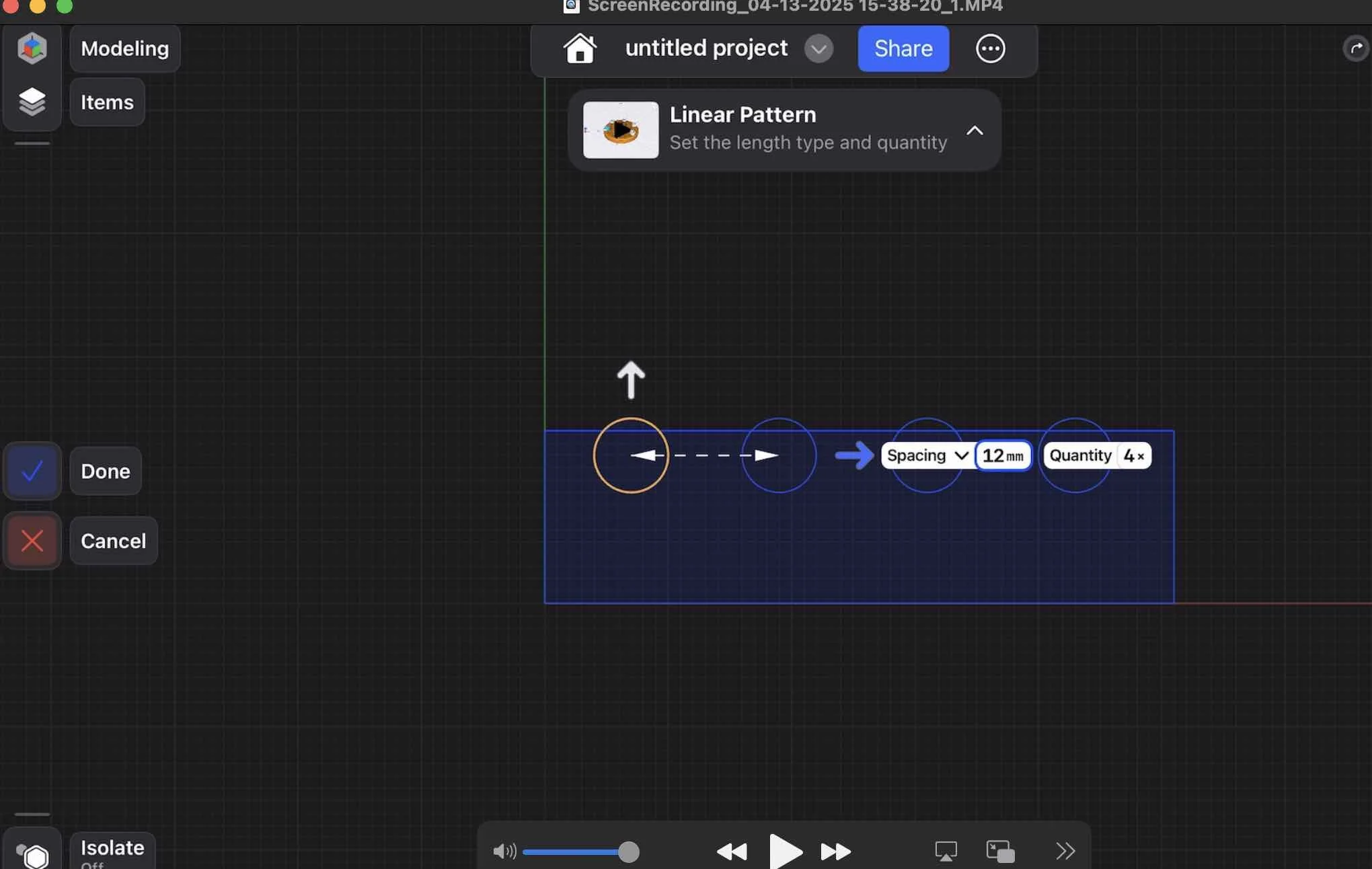 Shapr3D duplicates the circles evenly—and the best part… If you change the size or position of the original circle, all the copies update automatically.