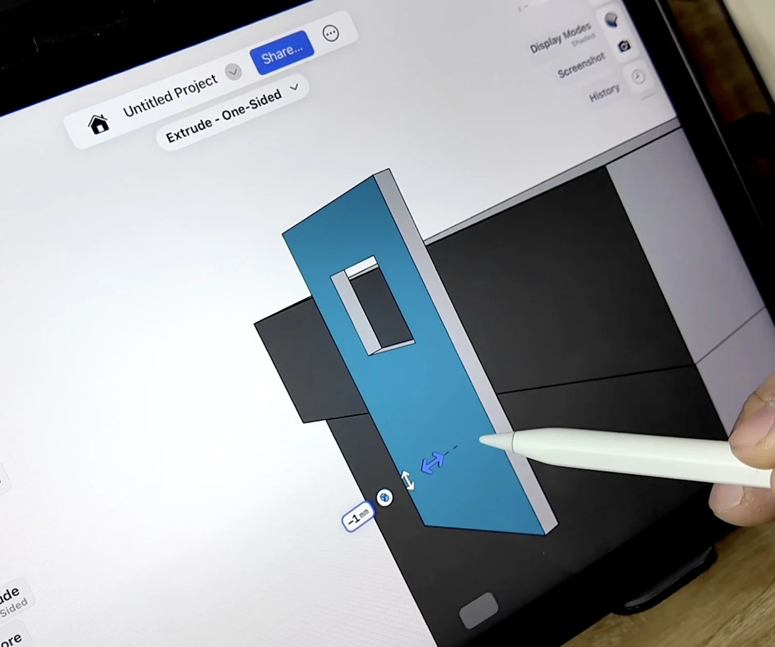 Shapr3D automatically triggers the extrude function. Type in the measured height.